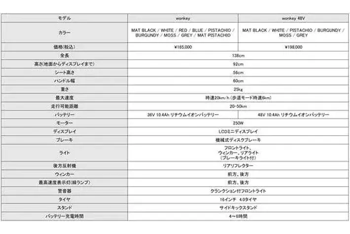 「wonkey 48V」にもカラーバリエーションが登場します。