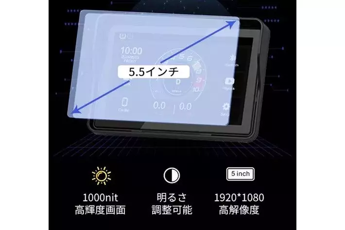 従来のTNとVAパネルは見る角度で色が変わるというデメリットあり、それを踏まえて、「MotorCycle」は5.5インチ全画面IPS液晶を採用しています。非常に広い視野角を備えており、ほとんどの角度から画像を鮮明に見ることができ、日差しの強い日中でも、白飛びすることなく表示することができます。