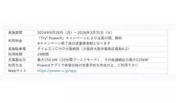 時間貸駐車場における超急速EV充電サービス提供に向けた実証実験開始