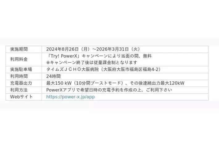 ※利用料金などの充電サービスの詳細は、『PowerXアプリ』で告知いたします。