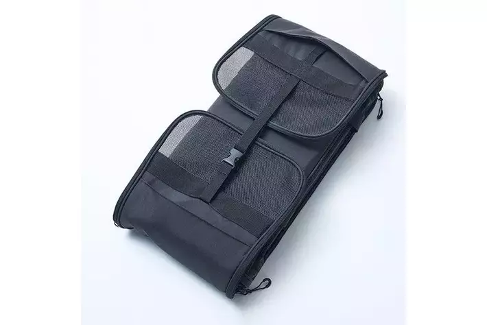 「ドライブペットキャリー」は、車でも自転車でも、キャリーバッグとしても使いやすい仕様と、ペットの負担軽減、安全性にこだわりました。車にはシートベルトで簡単にシートへの取付けができ、自転車バスケットにもしっかりと固定できる3箇所のベルト付です。キャリーバッグとして持ち歩く時の切り替えも簡単です。前面と底面に衝撃を約85%軽減するクッションを採用し、自転車の振動や、急ブレーキ時の負担を軽くします。ペットの飛び出しを防止するリードホルダーや、内側から開けられないロック式ファスナーも備えています。ハードキャリー派にも満足してもらえるしっかりとした作りで、自立設計のため簡易ハウスとしても活躍し、使わない時は折りたたんでコンパクトに収納できます。