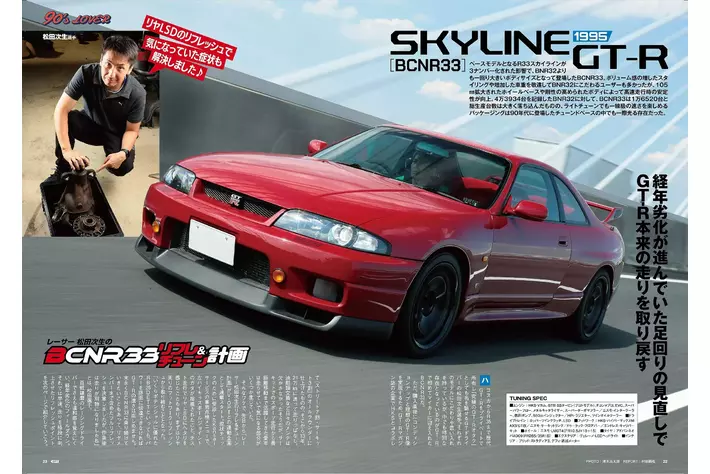「究極のGT-Rオタク」としても知られるレーサー松田次生の愛車、BCNR33の連載企画。いよいよリフレッシュ&チューニングに着手だ。今回は特大版として、リヤサス&リヤデフのフルリフレッシュを敢行したのに加えて、HKSの最新車高調「ハイパーマックスR」を投入。ここから松田選手流のセッティングに挑むことになるが、まずはオリジナルの乗り味を試してみた!!