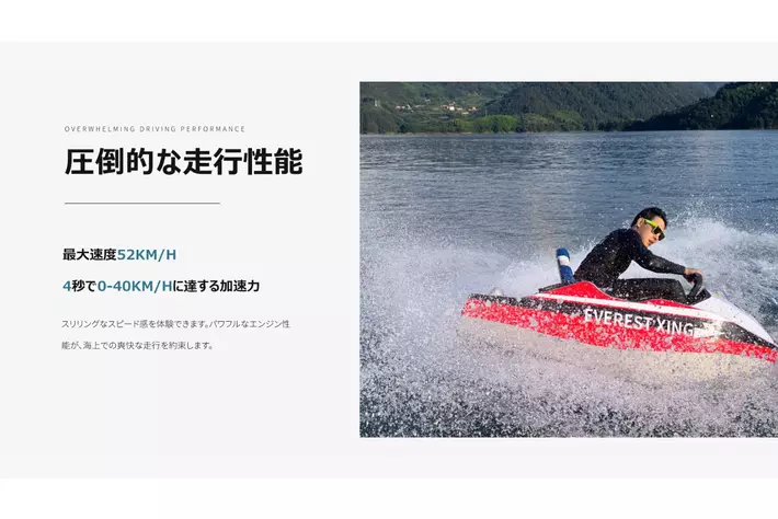 同ブランドは「最高峰の山エベレストのように先進的で最高峰のモビリティを提供する」、「未知に挑戦し続ける」をコンセプトとしているモビリティブランドです。すでに日本初最高峰※の600Wモーターを搭載した特定小型原動機付自転車区分の電動キックボードEX15シリーズを2024年8月28日から先行予約販売開始しており、今回新たな挑戦として水上モビリティをリリースします。今後「EVEREST XING」は陸の移動だけでなく、様々なシーンのモビリティを提供してまいります。