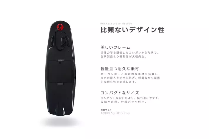 1.5kW未満の日本仕様、船検・免許不要。クリーンで静かな、次世代の電動ジェットボード・電動サーフボード・電動ミニボードの3機種で、日本最多※となります。