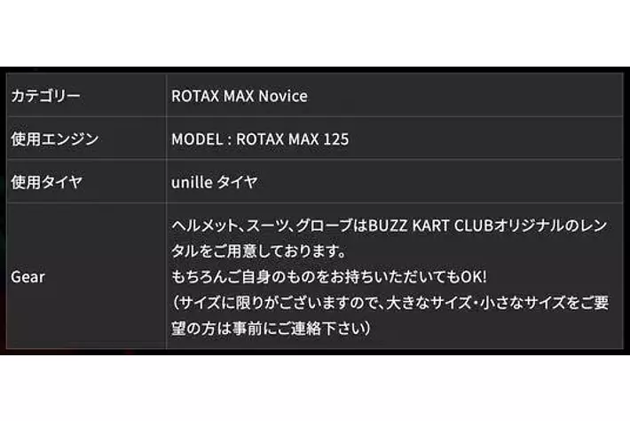 詳しくはBUZZ KART CLUBのHPをご確認下さいませ。