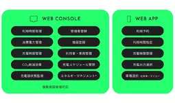 ユアスタンドの法人向けEV充電管理システム「Yourstand for Business」では、WebのコンソールとWebアプリにて両面から運用。