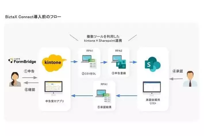 - RPAの課題克服kintoneとSharePointのAPI連携により、ブラウザのUI変更に影響を受けない安定したシステム連携を実現。