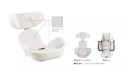 頭部側面60mm、後頭部最大90mm、背面最大100mmの厚みのあるクッションで、安全性と乗り心地を両立した新生児クッション。頭まわりには、側面の衝撃から頭部を守る衝撃吸収クッションを配備しています。足元は赤ちゃんの足を優しく守るフットガード形状になっています。