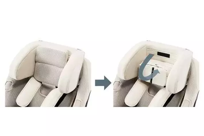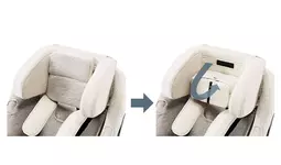 万が一の事故に備えた新機構のヘッドクッションで、強く追突された時に瞬時に作動※します。折りたたまれ厚みが増すことで、衝突の反動でシートに打ち付けられた際、お子さまの頭部への衝撃を軽減します。