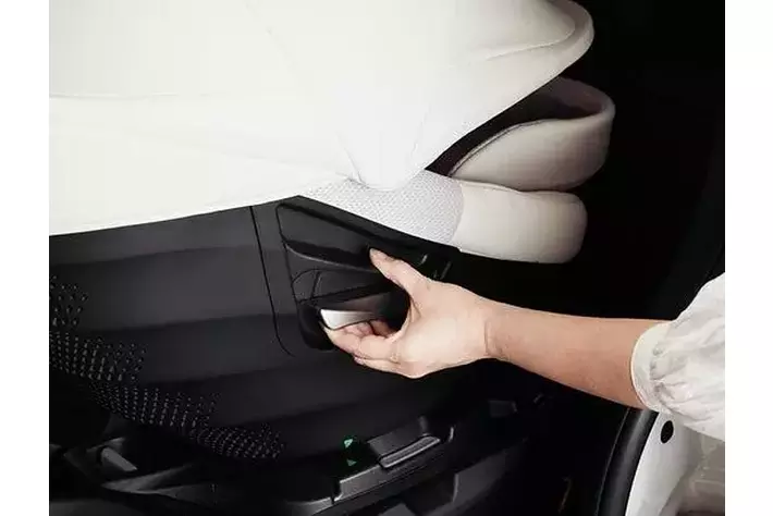 これまで好評だった回転操作ノブをお子さまの足元からシート側面に移動し、レバータイプに変更。2ドア車や狭い駐車場での操作性も向上、車種やシーンに関わらずストレスなく使うことができます。レバーは両サイドにあるため、左右どちらの座席にチャイルドシートを取り付けても使用できます。