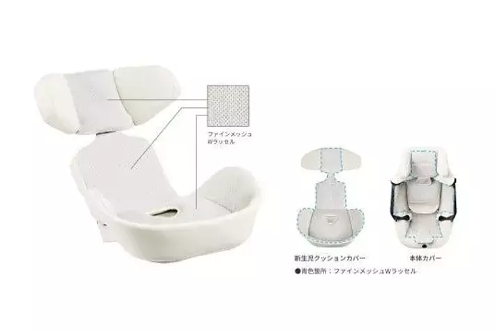 吸水速乾に優れた「クールマックス(R)エコメイド・ファブリック」と立体構造メッシュを組み合わせた、「ウィ」シリーズだけのオリジナル生地を新生児クッションと本体カバーの汗をかきやすい後頭部に採用。