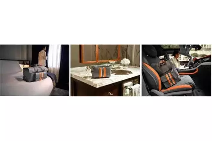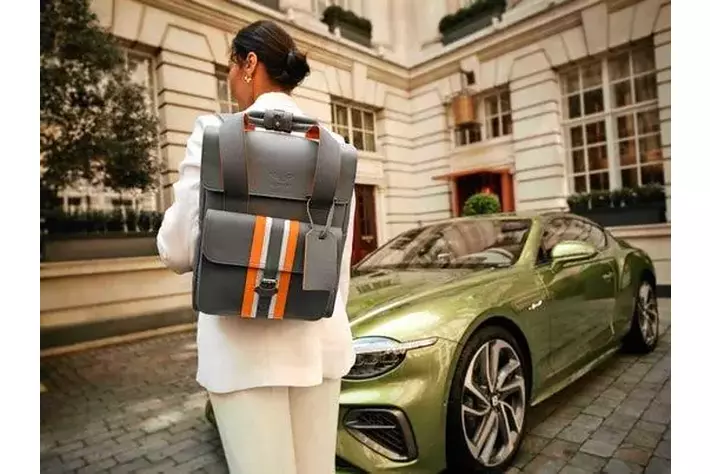 また、各アイテムはイタリアの最高級素材を使用し、手作業による職人技のディテールが施されています。手縫いのステッチやコントラストカラーの縁取り、バックル付きの前ポケット、デボス加工のベントレーのエンブレムが入ったラゲッジタグ、内側にはレザー仕上げのコンパートメントなど、すべてがベントレーの洗練されたデザインや品質、高級感までもこのアイテムで表しています。