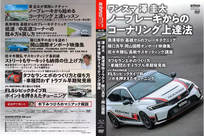 付録DVDは『澤圭太 ノーブレーキから始めるコーナリング上達法』『黒澤琢弥 基礎からのブレーキテクニック』『阪口良平の走りを盗め! 岡山国際オンボード映像集』の3本がドラテク企画。チューニング企画は『佐々木雅弘に聞くストリートもサーキットも納得のサスセッティング』『シンリョウレーシングに聞くタフなランサーエボリューションのつくり方&車種問わずトラブル早期発見の有効策』『J’S RACING FL5シビックタイプRチューニング最新情報』の3本です。副音声は恒例『木下みつひろマニアック解説』となっています。