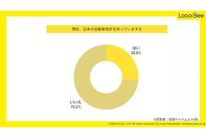 今回のアンケートでは、26.8%の在留ベトナム人が日本の自動車免許を持っているとの回答がありました。