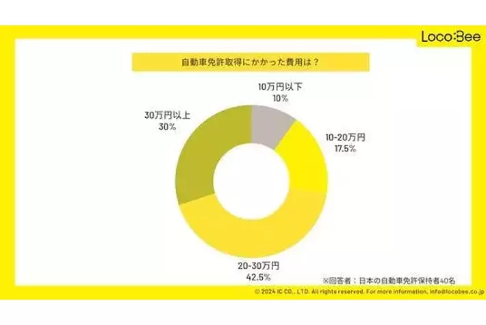 日本の自動車免許を持っている26.8%に聞いたところ、日本の自動車免許取得にかかった費用は左記の通りとなっています。この費用の内訳を見ると、日本で自動車教習所に通って免許を取得した人が多いことが予想されます。