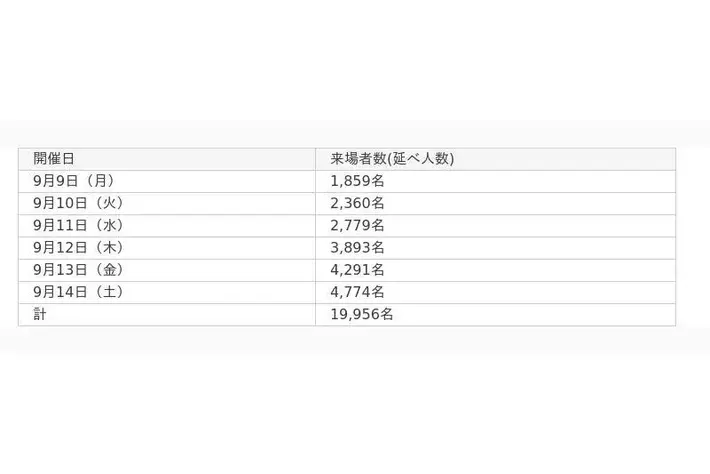 - 大会期間中には延べ19,956名の来場者を迎えました。