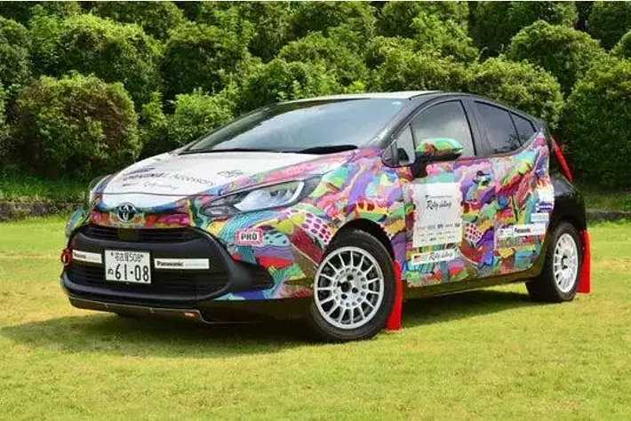 「HERALBONY Art Prize 2024」トヨタ自動車賞受賞作品が起用されたラリーカー。今回はトヨタ アクアを採用し、アートラリーカーとしてフルラッピング。見る人を楽しませる仕上がりとなっています。