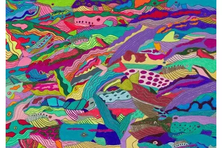 高校一年生のときに出会った担任の先生が 「言葉での表現が苦手だが、絵や文字を描くのが得意」という彼の性質を見出し、相互の間で絵を通じたやりとりが始まる。いつしか描くという行為自体が自分自身を表現し、内面の安らぎをもたらす居場所となった。 心の不安定な日が続いたある日、自宅で「絵を描く!」と大きな声で宣言し、黙々と創作に取り組むようになる。 彼の作品は、陸海空に生息するさまざまな種類の動物たちが画面いっぱいを埋め尽くすように登場する。油性色鉛筆で濃密に描かれた生物はどれも自由で大胆なフォルムをしていて、個々に鮮やかな色彩を放っているが、群れとして心地よい調和を生みながら共存している。