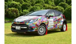 「HERALBONY Art Prize 2024」トヨタ自動車賞受賞作品が起用されたラリーカー。今回はトヨタ アクアを採用し、アートラリーカーとしてフルラッピング。見る人を楽しませる仕上がりとなっています。