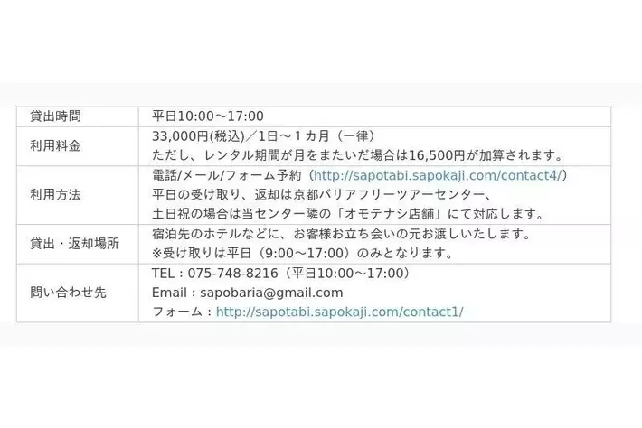2.京都バリアフリーツアーセンター経由でウィルを借りる場合