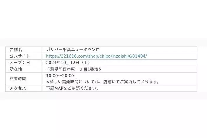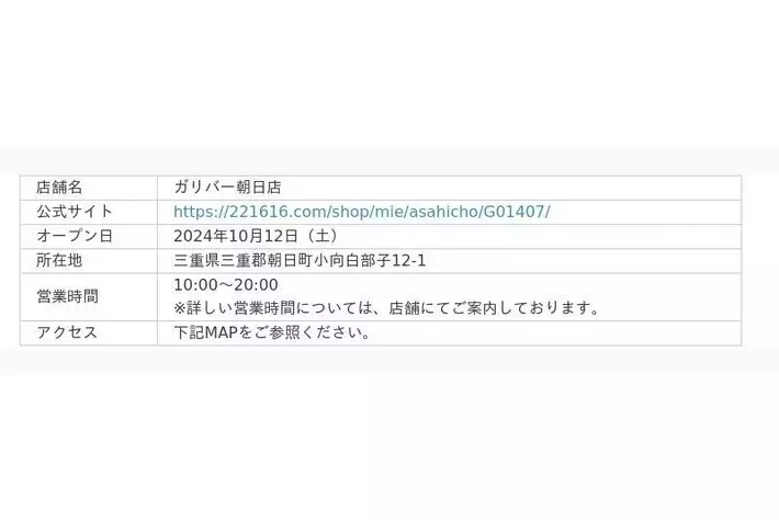 株式会社IDOM(本社:東京都千代田区丸の内二丁目7-2 JPタワー26階、以下:IDOM)はガリバーブランドの新店舗として、千葉県印西市に「ガリバー千葉ニュータウン店」、三重県朝日町に自社整備工場を併設した「ガリバー朝日店」の2店舗を2024年10月12日(土)に同時オープンすることをお知らせいたします。