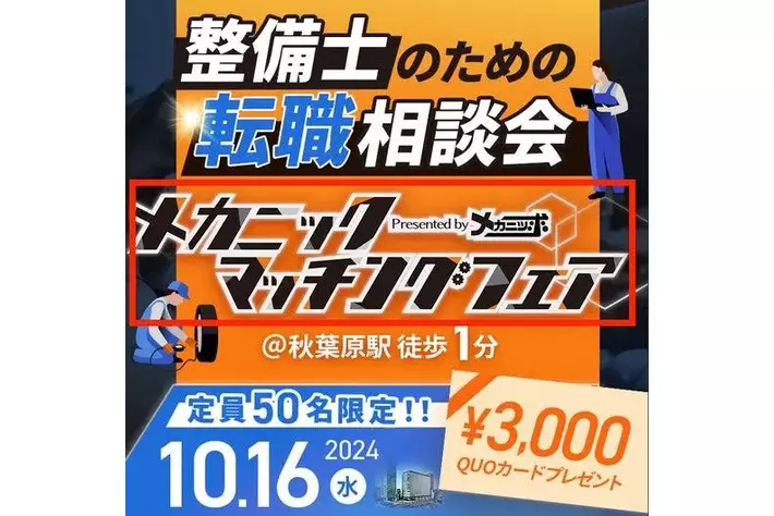 整備士特化型転職フェア「メカニックマッチングフェア」を2024年10月16日に開催