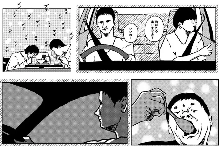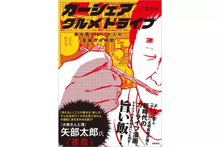 『ごめたん/五明拓弥』は、39歳でクルマの運転免許を取得してマイカー生活に心躍らせるも、クルマの維持費の問題でマイカー購入を断念していたところ、芸人仲間から維持費がかからないカーシェアリングの存在を教えてもらい利用を開始します。日常生活でカーシェアを利用する中でドライブが好きなことに気づき、「距離料金」がかからない6時間未満で色々なところにおいしいものを食べにいくドライブの様子を漫画にしたのが「カーシェア グルメドライブ−車を買えない大人の至福の6時間−」です。