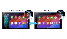 ・ 「Apple CarPlay」使用時、同一画面上に本機や対応アプリを操作するショートカットキーを表示する「スプリットスクリーン」を搭載※3。切換えボタンをタップするだけで簡単にスクリーンモードを変更でき、画面を遷移することなく、スムーズに目的の操作を行えます。