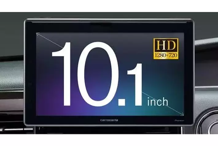 1DINサイズのフローティング構造により、10.1 インチの大画面モデルを幅広い車種(392車種)に取り付けることができます。高解像度(2,764,800画素)なHDパネルの採用に加え、視野角の広いIPS方式と黒色再現性に優れたNormally Black方式を採用。高透過率の静電容量方式タッチパネルや高輝度LEDバックライトを組み合わせることで、鮮明かつ高コントラストな映像表現を実現しています。HDMI(R)入力にも対応しているため、スマートフォンの映像を高画質で再生可能です。