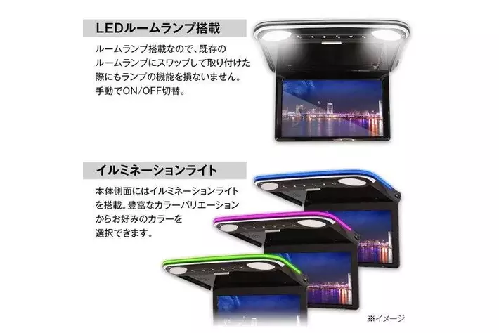 ルームランプ搭載なので、既存のルームランプにスワップして取り付けた際にもランプの機能を損ないません。手動でON/OFF切替。本体側面のイルミネーションライトは豊富なカラーバリエーションからお好みのカラーを選択できます。