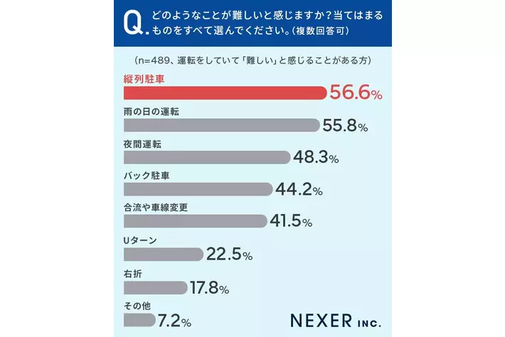 株式会社NEXER・車の運転で難しいと感じることに関する調査