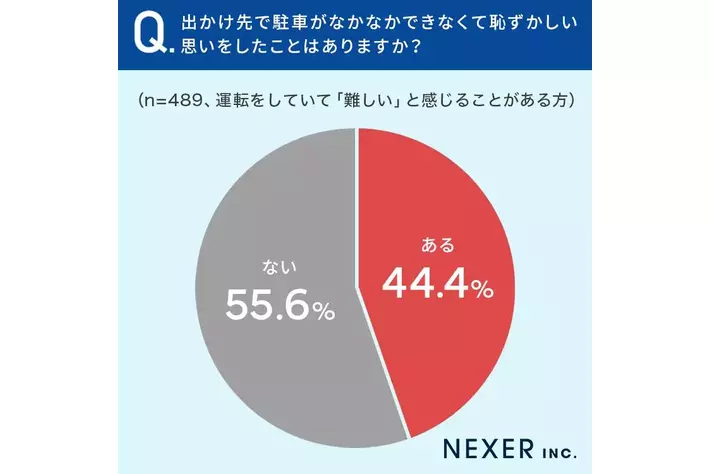 ■44.4%が出かけ先で駐車がなかなかできなくて恥ずかしい思いをしたことが「ある」