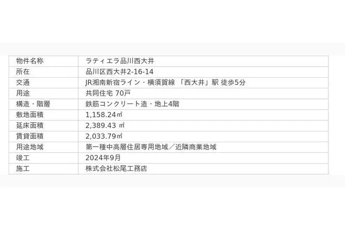 東京ガス不動産株式会社(社長:佐藤 裕史、以下「東京ガス不動産」)は、このたび、賃貸住宅「ラティエラ品川西大井(70戸)」を新たに取得しました。本物件の取得により、東京ガス不動産が供給する賃貸住宅の累計は、33棟、2,111戸※1となりました。
