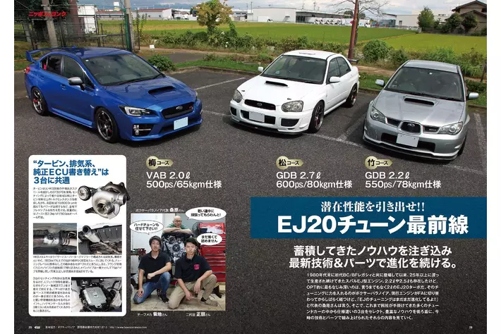 スバルのスポーツ4WDを語る上で欠かせないのが、1980年代末に登場してから25年以上に渡って生産され続けていたEJ20。主力ユニットはFAエンジン系に譲ったものの、チューニングシーンにおいてEJ20は進化し続けている。その最先端メニューをボクサーパラノイア・桑原さんに紹介してもらった。