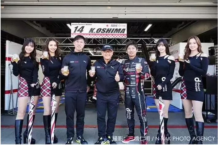 (左から)石浦監督、モリゾウ氏、大嶋選手とレースアンバサダーの皆さん