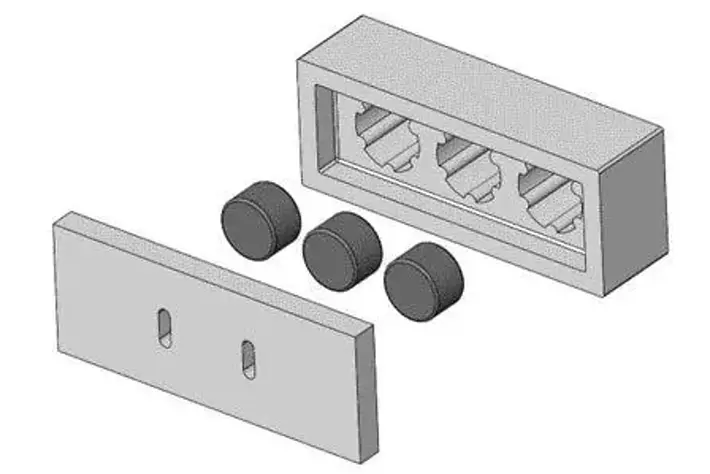 ニッケル水素電池の過放電・過充電により発生するガス等を排出し、電池内の圧力を調整する弁の発明です。本発明では、弁の蓋にピンをつけることで、溝をつくり、ゴムを加圧し薄くした新しい構造が特徴です(図1)。この溝がゴムの加圧で生じる開弁圧の上昇を防ぎ、ゴムを薄くすることで圧縮の変動による荷重が低減されます。そのため、ゴムの圧縮で発生する荷重で開弁性能を確保する構造の圧力調整弁よりも、排出性能を維持しながら、開弁性能のばらつきが抑えられます。