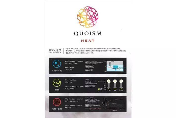 続いて機能性の紹介です。中綿には、やや厚めで蓄熱・発熱効果のあるものを使用しています。