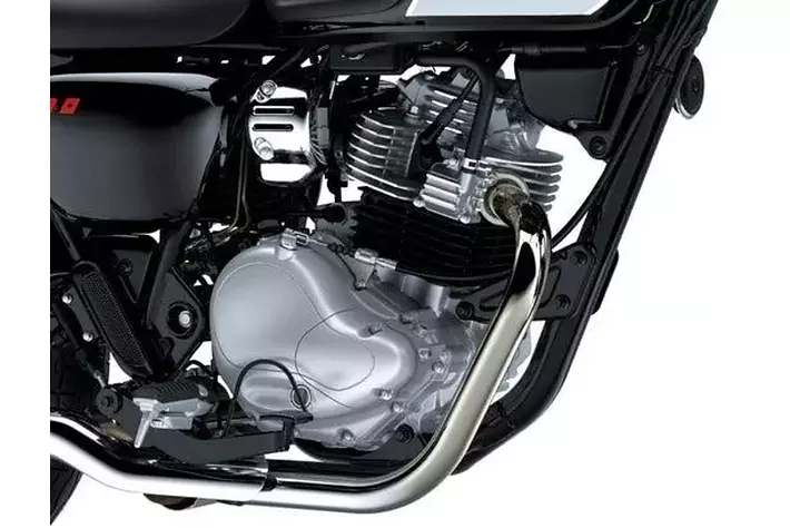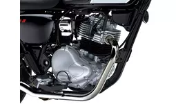 黒を基調に、効果的に配されたクロームメッキが輝くカラーリング。フューエルタンクには手作業で色付けされた「メグロ」のエンブレムがその存在を際立たせます。大型の冷却フィンを持つエンジンは、空冷4ストローク単気筒。エンジンカバー類はクラシカルな形状を持ち、かつての鉄部品を思わせる耐熱黒塗装が施されたシリンダーなど、各部にこだわりのデザインが施されています。