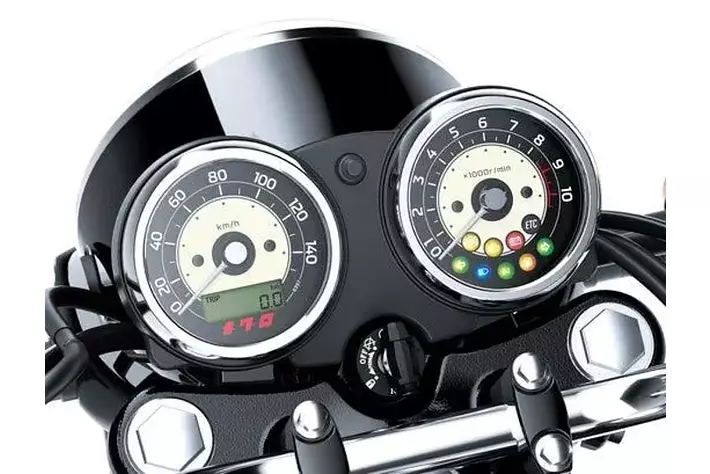・見やすい丸形のスピード/タコメーターとそれぞれに内蔵された液晶ディスプレイと各種インジケーター類