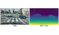 AIを利用して、単眼カメラで1枚の画像から深度を推定する技術です。本技術をLiDARなどの3Dセンサー出力と統合して利用することで、死角領域への測距を補間する技術として利用可能です。展示会では開発中製品として参考出展します。