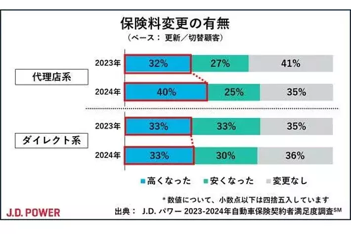 保険料変更の有無(出典:J.D. パワー2024年自動車保険契約者満足度調査(SM))