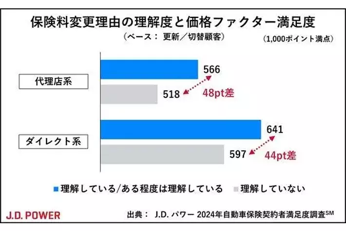 保険料変更理由の理解度と価格ファクター満足度(出典:J.D. パワー2024年自動車保険契約者満足度調査(SM))