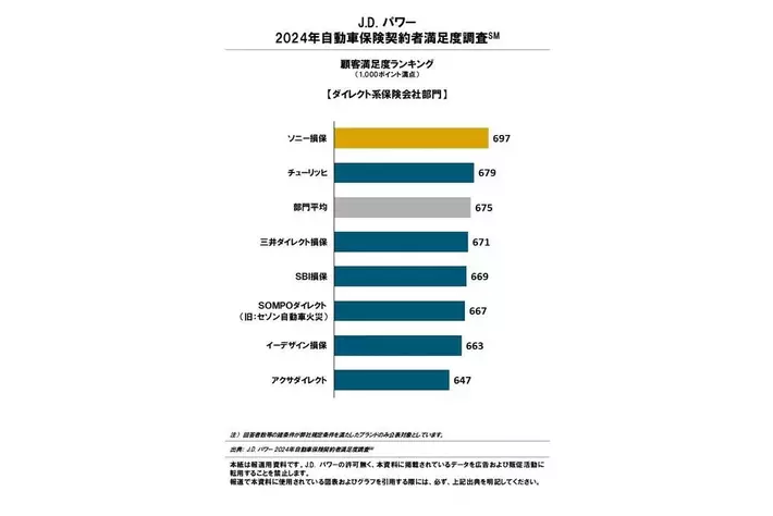 J.D. パワー2024年自動車保険契約者満足度ランキング【ダイレクト系保険会社部門】