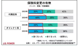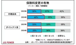 保険料変更の有無(出典:J.D. パワー2024年自動車保険契約者満足度調査(SM))