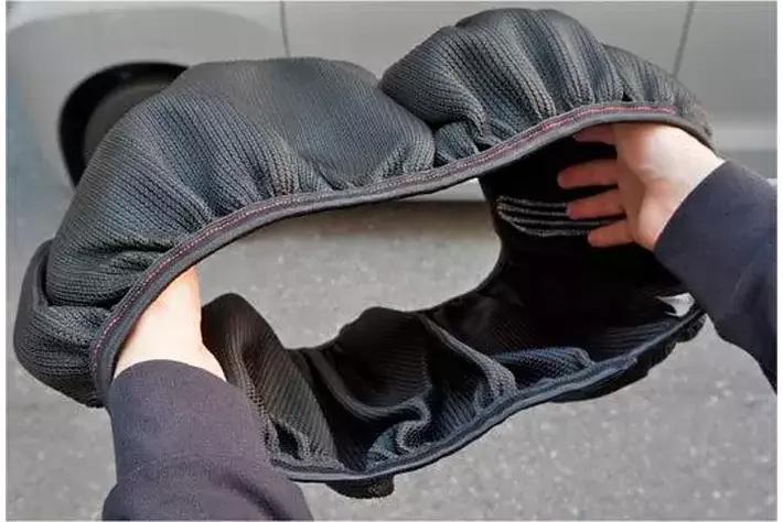 従来のタイヤチェーンは、金属製や樹脂製の商品が多く、装着前から作業に抵抗を感じる方や、実際に装着に苦労したというお声も多く聞かれました。布製タイヤ滑り止めカバー『モビルシュシュ』は、ヘアアクセサリーの「シュシュ」を大きくしたようなドーナツ形状で、素材が軽くてやわらかいため、初めて装着する人でも特別なテクニックや力は必要なく、慣れれば1分もかからず※装着が可能です。