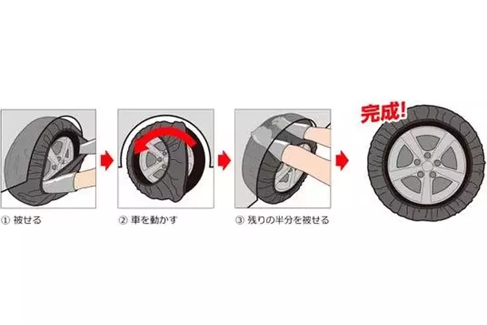 1. タイヤに被せるだけの簡単取り付け