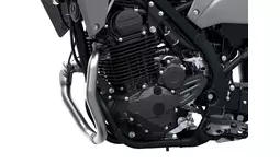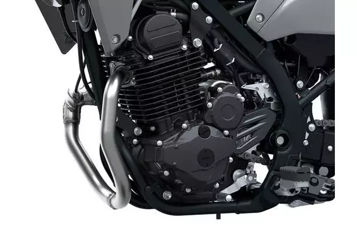 軽やかに、鮮やかに、街を駆け抜けるKLX230SM。スリムでスタイリッシュなモトクロッサーKXイメージのデザインに、前後17インチホイールとロードタイヤを装着。232cm³空冷4ストローク単気筒のエキゾーストノートを弾かせて、軽量・スリムな車体を思いのままに操る楽しさが実感できます。フレームはステアリングヘッドからスイングアームピボットを直線的に結ぶペリメター構造の鋼管セミダブルクレードル。インナーチューブ径37mmの倒立フォークがフロント周りの高い剛性を実現しています。新たに設計されたリヤサブフレームやショックアブソーバの設定見直しなどにより、シートの肉厚を高めながらシート高を低減。キャスター角/トレール量の変更や、ハンドルやステップの位置も見直すことで、ハンドリングと扱いやすさを向上させています。