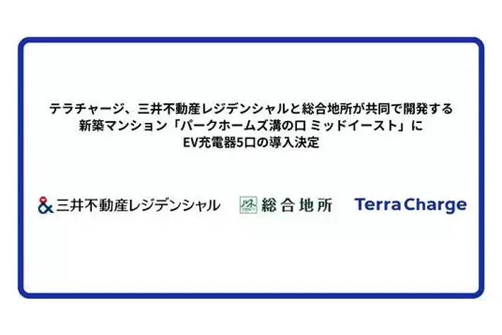 EV充電インフラ事業「Terra Charge(テラチャージ)」を展開するTerra Charge 株式会社(本社:東京都港区、代表取締役社長:徳重徹、以下「当社」)は、三井不動産レジデンシャル株式会社(本社:東京都中央区、代表取締役社長:嘉村 徹)と総合地所株式会社(本社:東京都港区:代表取締役社長:梅津 英司)の2社が共同で開発する、新築マンション「パークホームズ溝の口 ミッドイースト」(以下「本物件」)の駐車場に3kWのEV充電器5口の導入が決定したことをお知らせいたします。