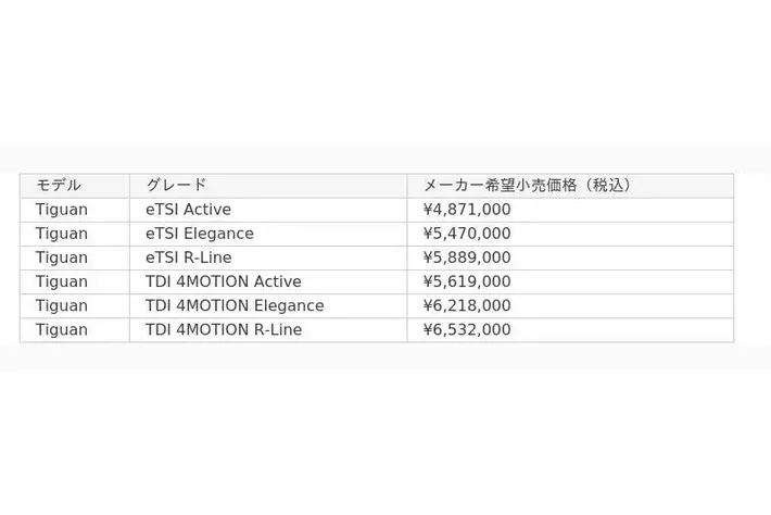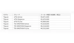 フォルクスワーゲン ジャパン(東京都品川区、ブランドディレクター:イモー ブッシュマン)は、今年9月から予約注文を受付していた、7年ぶりのフルモデルチェンジとなる3世代目新型「Tiguan(ティグアン)」のメーカー希望小売価格を決定し、11月19日(火)より全国のフォルクスワーゲン正規販売店にて販売を開始いたしました。