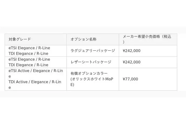 ・ 有償オプションカラー: オリックスホワイトMoPE(eTSI Active / Elegance / R-Line TDI Active / Elegance / TDI R-Line)